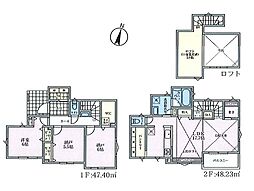 開放的な勾配天井とロフトが魅力の2LDK+S新築住宅!約19.5帖の広々LDKにWIC・SIC完備で収納充実。1坪バスや広い洗面で快適生活♪べた基礎採用で耐震性も安心、茅ヶ崎駅アクセス良好!
