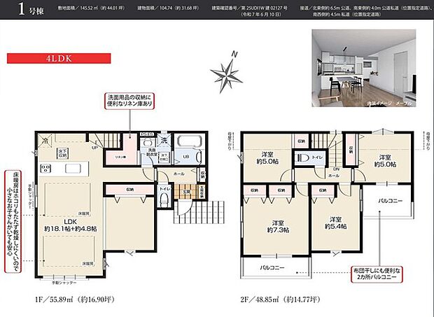 | 間取り | 4LDK 間取り内訳:リビングダイニングキッチン 22.9帖・洋室 7.3帖・洋室 5.4帖・洋室 5帖・洋室 5帖 |