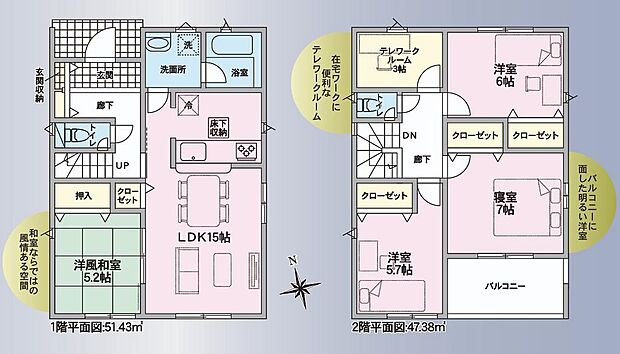 • 「建築条件付き土地」の「建物プラン例」は、土地購入者の設計プランの一例であり、プランの採用可否は任意です。