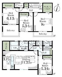 | 間取り | 4LDK 間取り内訳:リビングダイニングキッチン 15帖(1階)・洋室 3.5帖(1階)・洋室 7.5帖(2階)・洋室 5.6帖(2階)・洋室 5帖(2階) |