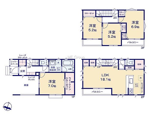 | 間取り | 4LDK 間取り内訳:洋室 7帖・リビングダイニングキッチン 18.1帖・洋室 6.9帖・洋室 5.2帖 |
