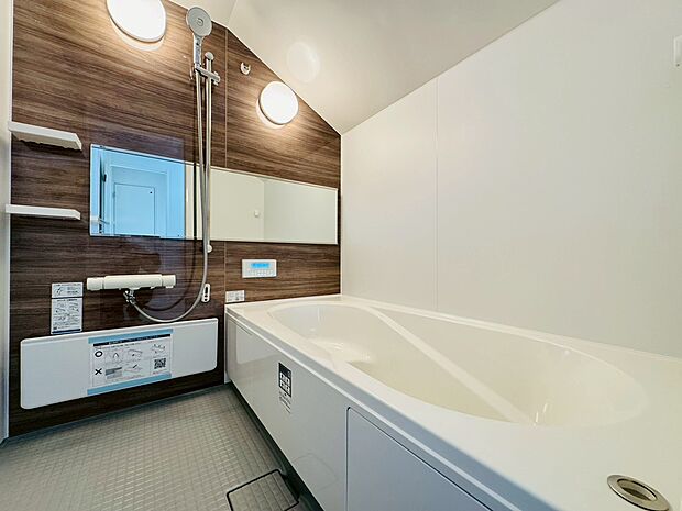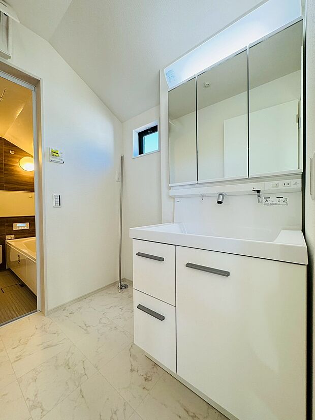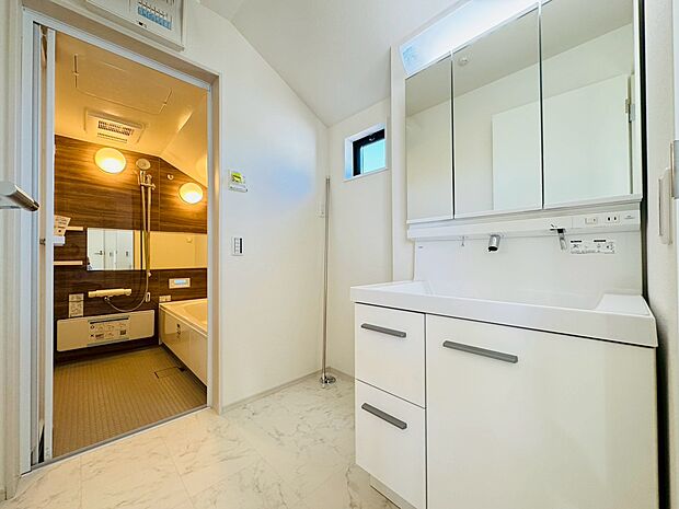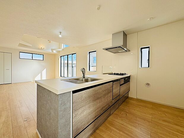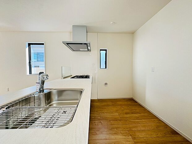 駐車スペース2台可(車種による) 完成済みにつき内覧・即時引渡し可能 食洗機・浄水器一体型システムキッチン 浴室乾燥機付きバスルーム エコジョーズ 全窓ペアガラス 都市ガス