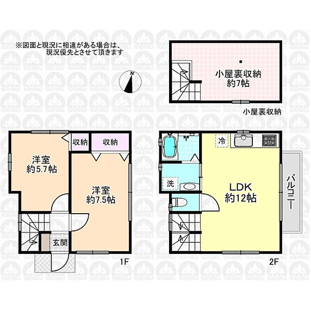 2LDK/固定階段付きの小屋裏収納/カースペース1台駐車可能(車種による)