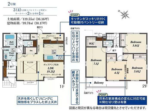 - 「建築条件付き土地」の「建物プラン例」は、土地購入者の設計プランの一例であり、プランの採用可否は任意です。