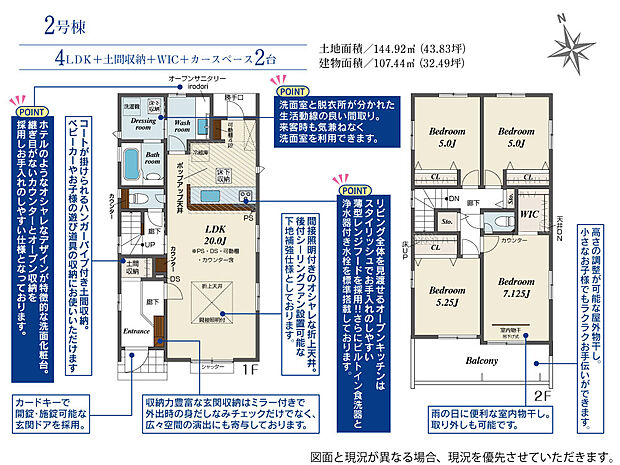 - 「建築条件付き土地」の「建物プラン例」は、土地購入者の設計プランの一例であり、プランの採用可否は任意です。