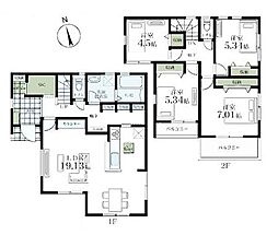 | 間取り | 4LDK 間取り内訳:洋室 5.7帖(2階)・リビングダイニングキッチン 16.6帖(1階)・洋室 6.5帖(2階)・洋室 6.1帖(2階)・洋室 4.5帖(2階) |