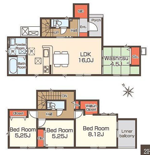 | 間取り | 4LDK 間取り内訳:リビングダイニングキッチン 16帖・洋室 8.1帖・洋室 5.2帖・洋室 5.2帖・和室 4.5畳 |