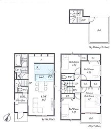 | 間取り | 4LDK 間取り内訳:リビングダイニングキッチン 16.5帖(1階)・洋室 6.7帖(2階)・洋室 5.2帖(2階)x2・洋室 4.5帖(2階) |