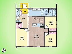 | 間取り | 4LDK 間取り内訳:リビングダイニングキッチン 16帖(1階)・和室 6畳(1階)・洋室 6帖(2階)・洋室 6帖(2階)・洋室 8帖(2階) |