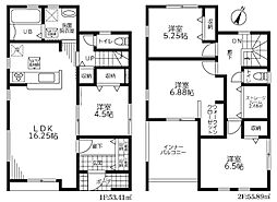 | 間取り | 4LDK(建物面積/バルコニー面積除く) 間取り内訳:リビングダイニングキッチン 15.2帖(1階)・和室 4.5畳(1階)・洋室 7.5帖(2階)・洋室 5.2帖(2階)x2・収納 3帖(2階) |
