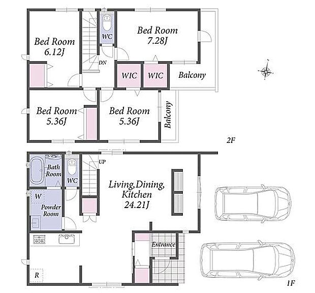 バスルームには浴室乾燥機採用。2台駐車可能なカースペース付き新築分譲住宅。