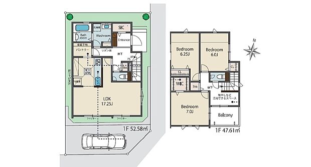 • 「建築条件付き土地」の「建物プラン例」は、土地購入者の設計プランの一例であり、プランの採用可否は任意です。