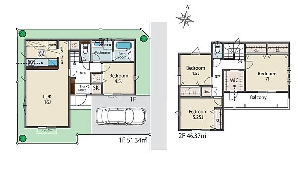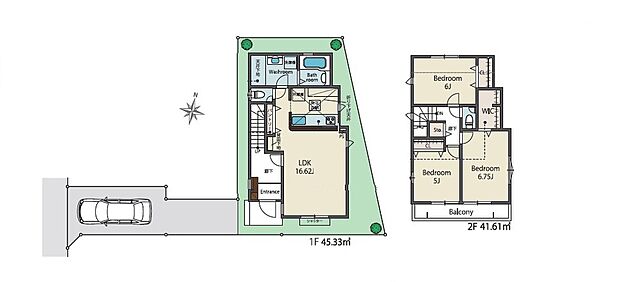 • 「建築条件付き土地」の「建物プラン例」は、土地購入者の設計プランの一例であり、プランの採用可否は任意です。