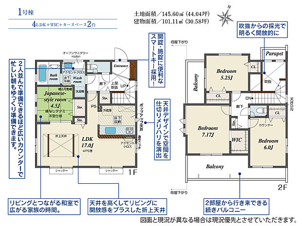 • 「建築条件付き土地」の「建物プラン例」は、土地購入者の設計プランの一例であり、プランの採用可否は任意です。