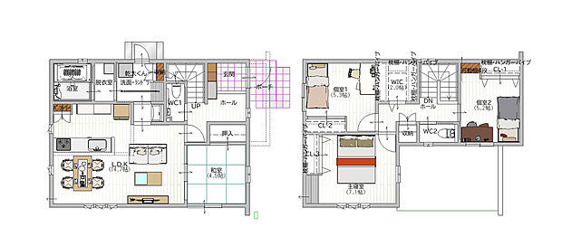 | 間取り | (1号地)4LDK+LR+FC+PT・(3号地)4LDK+PT+LR+FC+和室 |