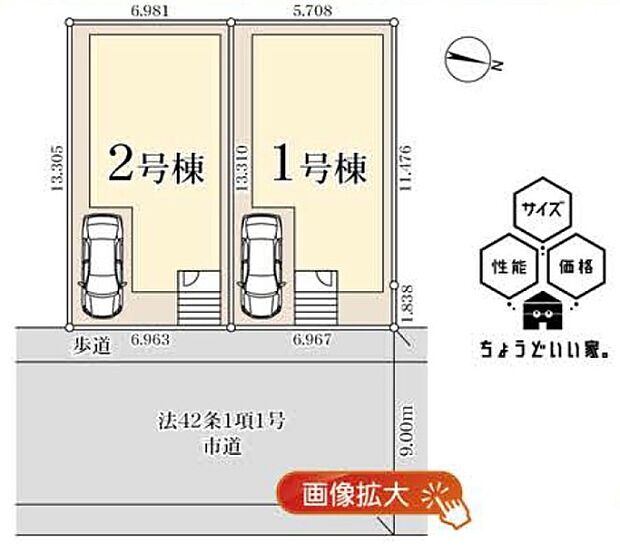 全2棟、LDK16帖、対面キッチン、ワイドバルコニー、主寝室7帖超、リビング収納、ホール収納、WIC