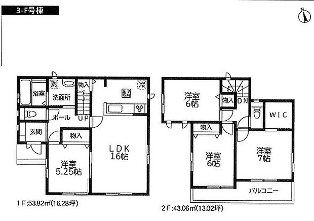 | 間取り | 4LDK 間取り内訳:リビングダイニングキッチン 16帖(1階)・洋室 5.2帖(1階)・洋室 7帖(2階)・洋室 6帖(2階)x2 |
