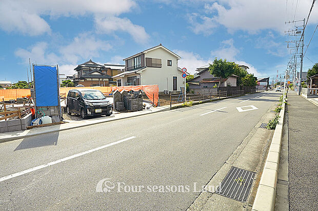 折上天井がアクセントのLDKは約16帖とゆとりある広さ。 食洗機や浴室乾燥機など暮らしを彩る設備が充実しています。 前面道路幅が約9.6mと広く、車の出し入れもスムーズ。