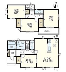 | 間取り | 3LDK(+タタミコーナー+ウォークインクローク) 間取り内訳:リビングダイニングキッチン 21.5帖(1階)・洋室 7.5帖(2階)・洋室 5.2帖(2階)・洋室 5帖(2階) |