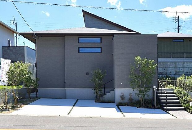 【現地見学できます】水平ラインが際立つ、モダンでシンプルなファサードが印象的な外観。 閉じた佇まいからは想像できない、プライバシーと開放感を両立した住まい。 深い軒の出が印象的なミサワホームの平屋。「蔵」+「土間蔵」で、より広くより高く、大きな空間を創り出し、より豊かな生活を支える住まいです。 約23帖のLDKには、3mを超える天井高と2.7mサッシの連続開口を採用。ミサワホームならではの大空間・大開口を実現しています。