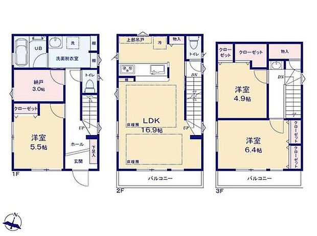 | 間取り | 3LDK+S(納戸)・4LDK | 建物階 | 木造3階建 |