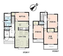 | 間取り | 4LDK 間取り内訳:リビングダイニングキッチン 15.3帖(1階)・洋室 5.2帖(1階)・洋室 7.2帖(2階)・洋室 6帖(2階)・洋室 5.2帖(2階) |