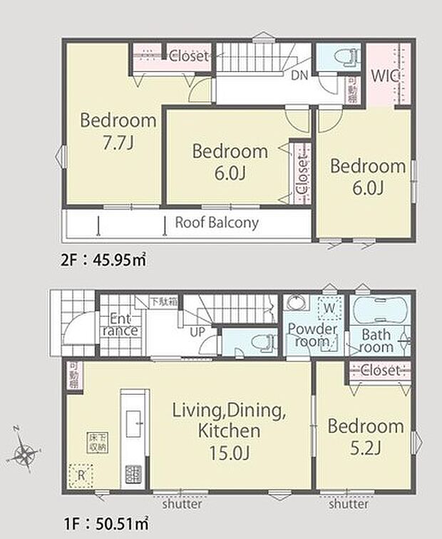 | 間取り | 4LDK 間取り内訳:リビングダイニングキッチン 15帖・洋室 5.2帖・洋室 6帖x2・洋室 7.7帖 |