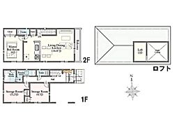 | 間取り | 1SLDK 間取り内訳:その他 3帖(2階)・収納 5.2帖(1階)・収納 4.5帖(1階)・リビングダイニングキッチン 16.8帖(2階)・洋室 6帖(2階) |