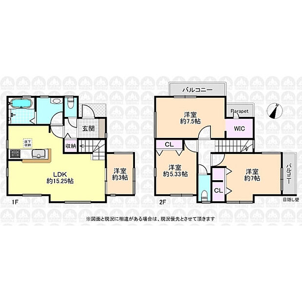 • 「建築条件付き土地」の「建物プラン例」は、土地購入者の設計プランの一例であり、プランの採用可否は任意です。