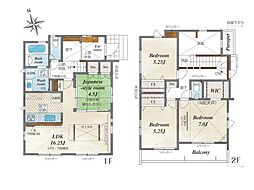| 間取り | 4LDK 間取り内訳:リビングダイニングキッチン 17.3帖(1階)・洋室 6.4帖(2階)・洋室 4.3帖(2階)・洋室 6.5帖(2階)・洋室 5.4帖(2階) |