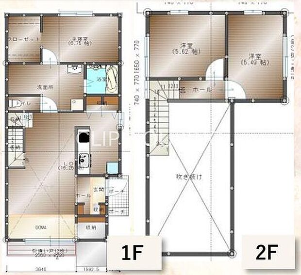 | 間取り | 3LDK 間取り内訳:リビングダイニングキッチン 16.2帖(1階)・洋室 6.7帖(1階)・洋室 5.6帖(2階)・洋室 6.4帖(2階) |