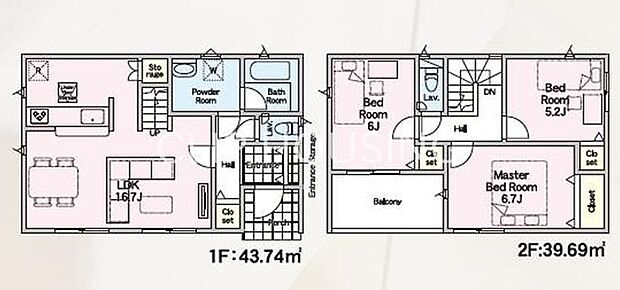 間取り内訳:リビングキッチン 16.7帖(1階)・洋室 6帖(2階)・洋室 5.2帖(2階)・洋室 6.7帖(2階)