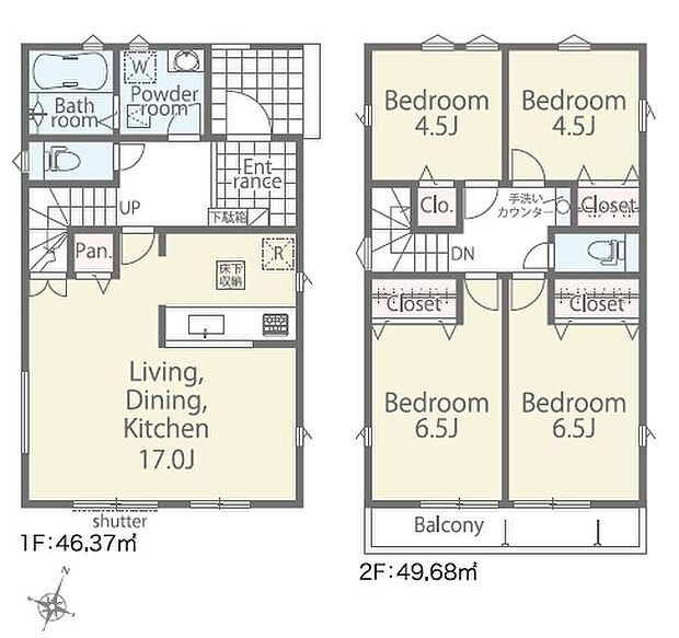 間取り内訳:リビングダイニングキッチン 17帖(1階)