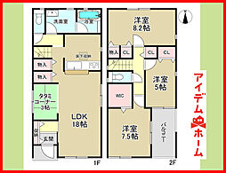 【主寝室8.2帖☆】リビング広々21帖♪(タタミコーナー含む)並列駐車2台可能☆前面道路が広く採光確保☆収納便利な大容量のWIC♪安心の住宅性能評価付き☆