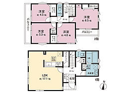 | 間取り | 3LDK 間取り内訳:リビングダイニングキッチン 17帖(1階)・洋室 7帖(1階)・洋室 6.5帖(1階)・和室 4.5畳(1階) |