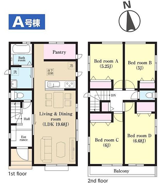 | 間取り | 4LDK 間取り内訳:リビングダイニングキッチン 19.6帖(1階)・洋室 5帖(2階)・洋室 5.2帖(2階)・洋室 6帖(2階)・洋室 6.6帖(2階) |