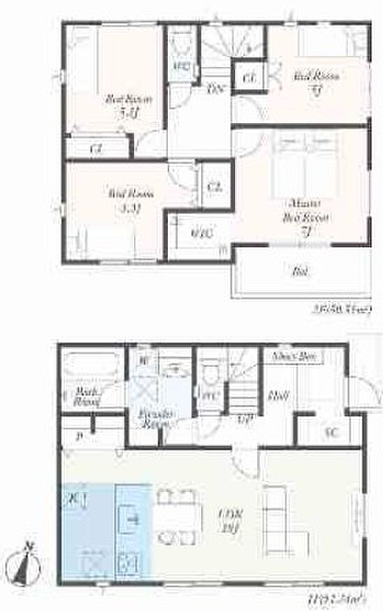 | 間取り | 4LDK 間取り内訳:リビングダイニングキッチン 18帖(1階)・洋室 7帖(2階)・洋室 5.3帖(2階)x2・洋室 5帖(2階)・その他(1階)・その他(2階) |