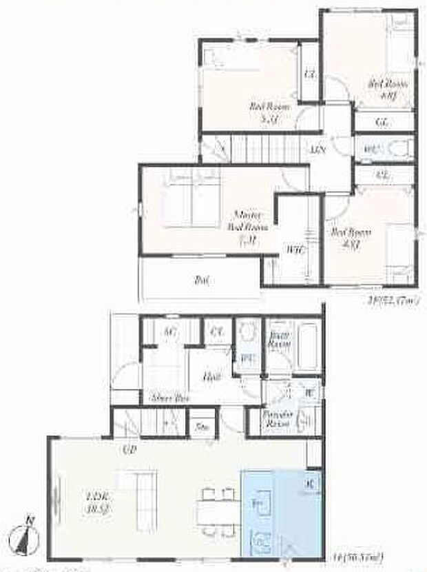 | 間取り | 4LDK 間取り内訳:リビングダイニングキッチン 18.5帖(1階)・洋室 7.3帖(2階)・洋室 5.3帖(2階)・洋室 4.8帖(2階)x2・その他(1階)・その他(2階) |