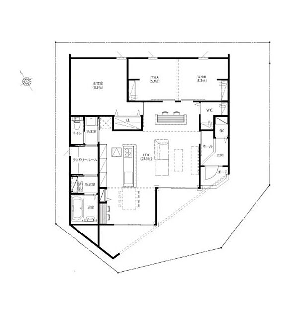 | 間取り | 3LDK + WIC+SIC+ランドリールーム | 建物階 | 木造軸組工法平屋建て |