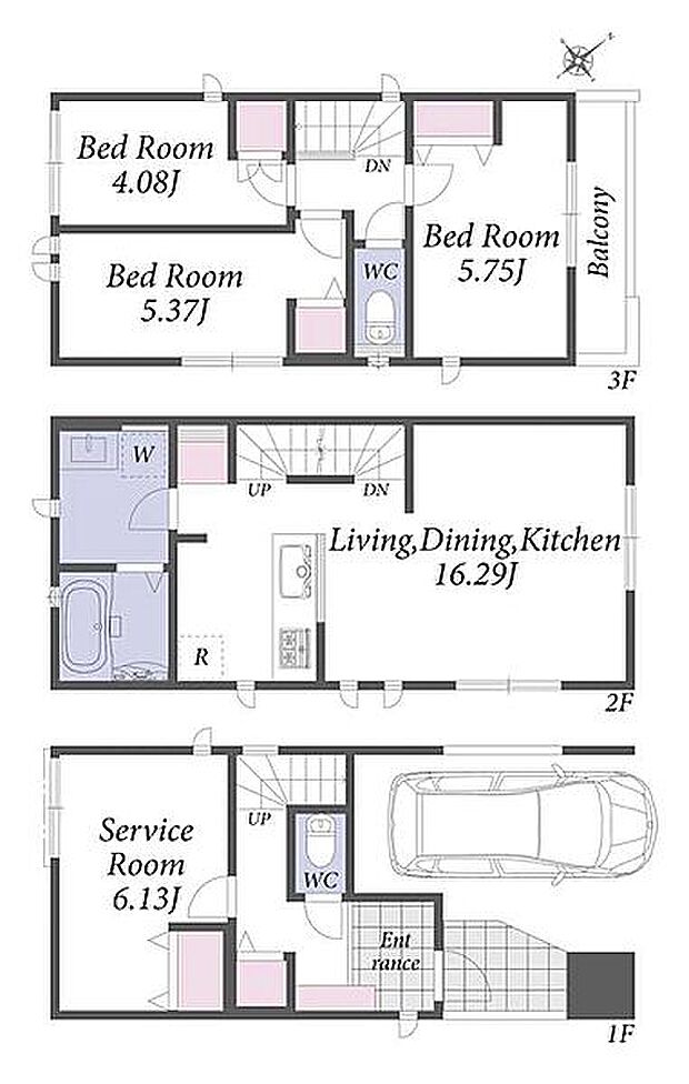 間取り 3LDK+S 建物階 木造、地上3階建て