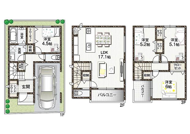 | 間取り | 4LDK+駐車スペース | 建物階 | 木造3階建 |