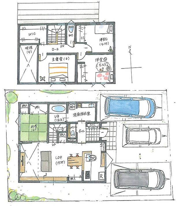 | 建物面積 | 1号地:100.19m2 2号地:99.36m2 | ||