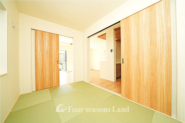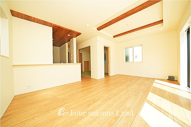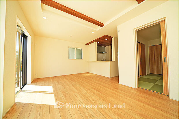 洗練されたデザインが魅力の3LDK住宅。 明るく開放的なリビングは、家族の団らんにぴったりの心地よい空間です。 キッチンには清潔感を保ちやすいフルフラットカウンターを採用し、調理や片付けもスムーズ。