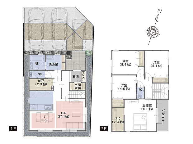 | 建物面積 | 103.93m2(B号棟)~106.07m2(A号棟) | ||