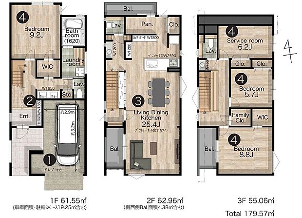 | 建物面積 | 179.57m2~180.80m2 |