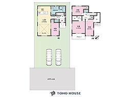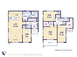 | 間取り | 4LDK 間取り内訳:リビングダイニングキッチン 18.5帖(1階)・洋室 5帖(1階)・洋室 10帖(2階)・洋室 8.7帖(2階)・洋室 5.5帖(2階) |