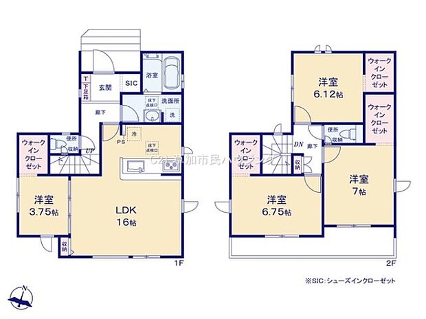 全2棟、土地45坪以上、並列駐車2台可、LDK16帖、対面キッチン、全居室WIC有、SIC、、ZEH