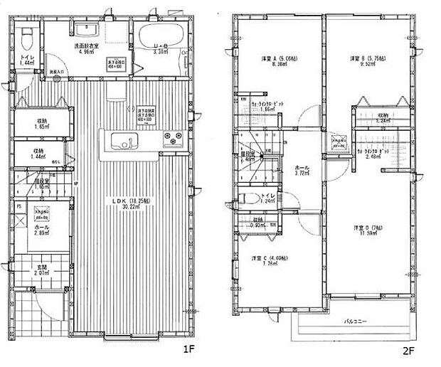 | 間取り | 4LDK(4LDK+ウォークインクローゼット) 間取り内訳:リビングダイニングキッチン 18.2帖(1階)・洋室 7帖(2階)・洋室 5.7帖(2階)・洋室 5帖(2階)・洋室 4.6帖(2階) |