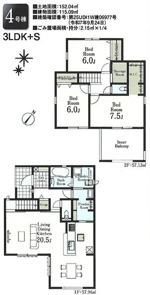 | 間取り | 3SLDK 間取り内訳:リビングダイニングキッチン 20.5帖(1階)・洋室 6帖(2階)x2・洋室 7.5帖(2階) |
