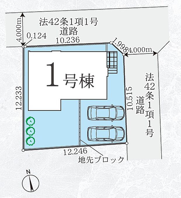 南東向き道路の角地につき陽当り・通風・開放感良好です! カースペース並列で2台分(車種による)♪